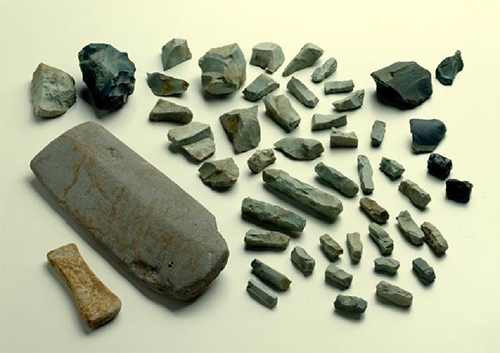 Middle Kofun period (5th century); unearthed from the Nagahara Site; the whetstone (in the lower left) 5 cm long; held by the Osaka City Cultural Properties Association for the Osaka City Board of Education