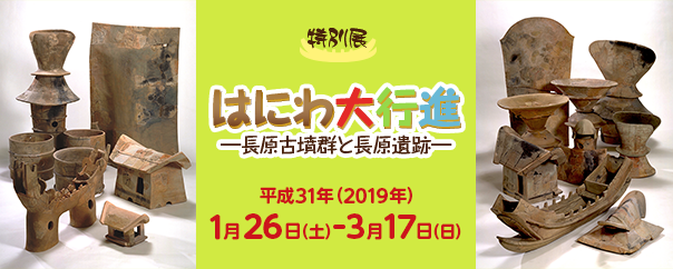 The Nagahara-Takamawari No. 2 burial mound is a circular burial mound with a diameter of 21 meters, where a wide variety of representational haniwa were discovered, including house-, armor-, shield-, quiver-, sunshade- and boat-shaped haniwa. This boat-shaped haniwa was discovered lying at the bottom of a ditch surrounding the burial mound. Considering that most of the fragments of this haniwa were found there, it is thought to have been placed and always remained in the ditch. This haniwa represents a semi-composite boat and looks like a dugout canoe equipped with planks alongside the body, a two-pronged bow and stern, shield-shaped chocks at the front and rear, and a deck and partitions. There are four pairs of oar pivots at the center of both sides of the boat, which indicates this haniwa was modeled after a large boat with more than eight rowers. This is a uniquely designed boat-shaped haniwa uncovered in the Kinki region, and, along with other haniwa unearthed from the Nagahara-Takamawari No. 1 and No. 2 burial mounds, has been designated an National Important Cultural Property.