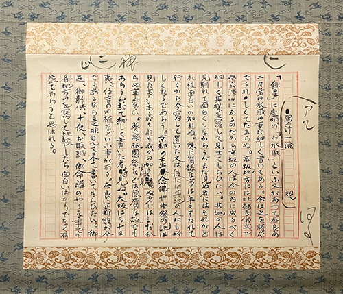 この原稿を所持していた塩谷鵜平(1877-1940)が 、虚明の入院を聞いて急ぎお見舞いの品として届けました。虚明は病床で受け取り、その数日後に息を引き取りました。